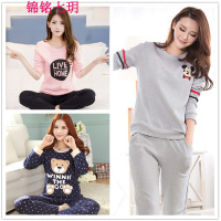 秋冬季睡衣女士长袖棉质韩版可爱卡通可外穿套装家居服