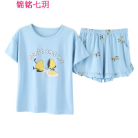 睡衣女士棉质夏季韩版短袖长裤可爱卡通休闲家居服套装宽松可外穿
