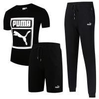 彪马男2018春夏新款短袖圆领纯棉T恤休闲运动服长短裤三件套