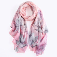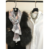 优雅灰印花韩版春秋百搭长款真丝丝巾女夏季桑蚕丝素绉缎防晒披肩 优雅灰