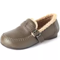 加绒单鞋鞋乐福鞋勃肯25冬季豆豆鞋女软底一脚蹬新款复古真皮棉鞋