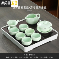 三维工匠功夫茶具套装家用简约日式干泡盘办公室密胺储水茶台茶壶盖碗组合 粉青盖碗套组-方寸四方白盘 10件