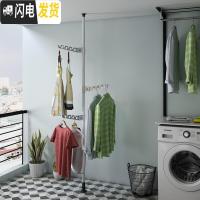 敬平顶天立地晾衣架家用落地卧室内免打孔伸缩杆阳台窗口晒挂衣架器 黑[杆]-送5个翅膀 大