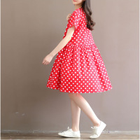 2016森女文艺大码女装复古短袖连衣裙波点宽松显瘦娃娃裙女夏中裙