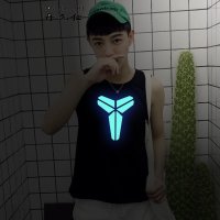 丹杰仕新款潮男夜光T恤 半袖上衣潮男狼头夏装无袖背心小咖秀百搭潮