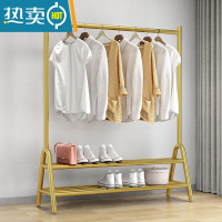 敬平多层衣架落地卧室家用挂衣服架子网红晾衣架省空间简易收纳置物架 双层可调节:带板长80高180纳米金