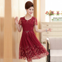 新款中老年女装夏装大码短袖连衣裙妈妈装中长款时尚宽松印花裙子