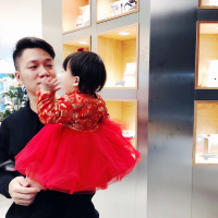 LUSON妈 女宝宝连衣裙春秋装婴儿新年装礼服公主裙唐装旗袍裙子