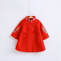 天天特女童中国风连衣裙冬宝宝刺绣毛呢夹棉裙子新年儿童拜年服
