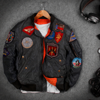 真皮皮衣男款水洗褶皱小牛皮多标机车服立领空军飞行员皮夹克