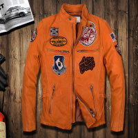 17新款秋潮男立领短款多标机车飞行员服空军真皮皮衣男褶皱羊皮