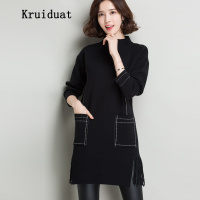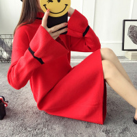 秋冬中长款韩版半高领宽松长袖百搭套头打底毛衣裙女学生针织衫潮