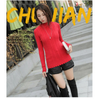 薇侣2017新品实拍秋冬新款韩版长袖半高领荷叶边打底裙针织衫毛衣女