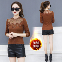 2017秋冬季新款长袖半高领性感蕾丝加绒加厚打底衫女士百搭上衣服