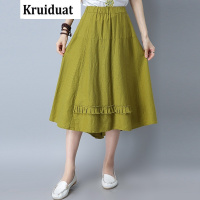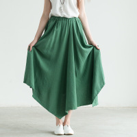 Kruidvat2017新款清新棉麻大摆半身裙松紧腰绿色均码
