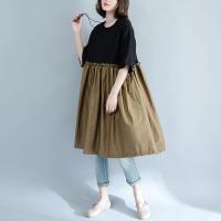 实拍大码女装180斤胖mm显瘦纯棉拼接大摆中长款休闲连衣裙绿