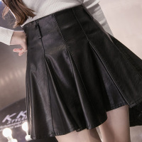 顺崇2018春春新款半身裙百褶裙女短裙高腰A字伞裙pu小皮裙子裤裙