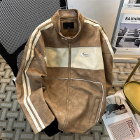 男装新款撞色立领PU皮衣男美式复古宽松痞帅机车风皮夹克男士外套