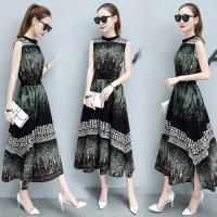 顺崇2018长裙女夏季2新款女装韩版大码收腰显瘦气质印花无袖雪纺连衣裙