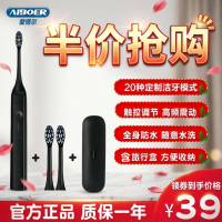 爱博尔电动牙刷成人充电款软刷毛防水20档触控调节升级新v6plus粉色黑色含多只刷头含旅行盒方便收纳