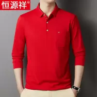 恒源祥长袖t恤男士宽松翻领中老年本命年红色丝光棉真口袋polo衫