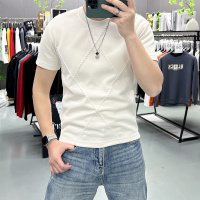 丝光棉短袖T恤男轻奢夏季新款透气休闲圆领修身半袖打底衫上衣潮i_1