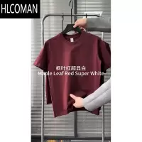HLCOMAN酒红色高级感正肩男t恤宽松短袖上衣潮牌夏季内搭打底衫