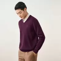 恒源祥羊毛衫男冬季加厚纯羊毛V领针织衫中年打底爸爸大码毛衣