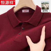 恒源祥含羊毛针织衫男士春秋款中老年人红色本命年翻领毛衣爸爸装