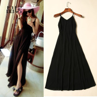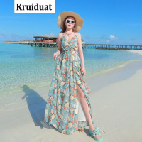 2018春夏季新款大码开叉雪纺连衣裙吊带长裙夏天旅游沙滩裙女