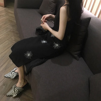 夏季韩版新款雪纺中长款吊带裙显瘦开叉复古长裙刺绣连衣裙女