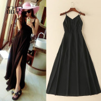 2018夏季新款吊带连衣裙女大码开叉雪纺长裙海边度假旅游沙滩裙潮