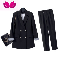 七斓休闲西装套装女士2023新款宽松大码职业面试正装黑色西服外套