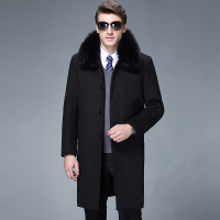 免费试穿 高端羊绒大衣羊毛呢子大衣中长款男式领导干部商务风衣加厚羊毛大衣男士外套立领长款加肥加大码男装可拆卸内胆狐狸毛领
