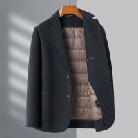 2024春秋新款羊毛呢子外套爸爸羊绒大衣男士短款商务休闲加绒加厚加肥加大码中老年男装羊绒呢子外套男风衣春装