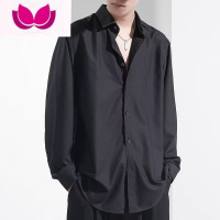 七斓黑色长袖衬衫男士港风高级感大码休闲上衣潮流宽松男装外套