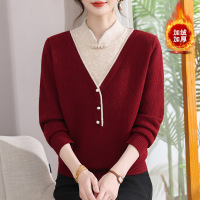 妈妈秋冬洋气改良旗袍上衣中年女装冬装毛衣中老年加绒加厚打底衫