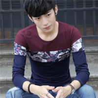 薇侣2017新品新款男士圆领长袖t恤男秋冬撞色大码修身韩版男装长T恤