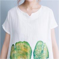 2017夏装新款文艺大码宽松印花长款T恤V领侧开叉棉麻连衣裙长裙女