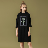植物大版纯棉长款T恤连衣裙女中袖宽松懒人OP裙CYLLBLDG
