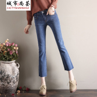 微喇叭裤女新ins新款高腰加绒牛仔裤阔腿chic九分