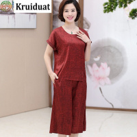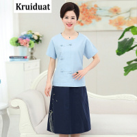 Kruidvat中老年薄款休闲套装2017夏季新款时尚色妈妈装大码裤裙两件套