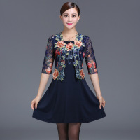 初秋新款大码中老年婚宴妈妈刺绣外套背心裙两件套连衣裙女夏