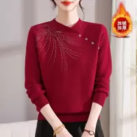 年女装针织妈妈装洋气烫钻女50岁简约中老年女装毛衣女冬加绒