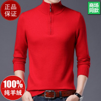 专柜大牌 加厚羊绒衫男100纯羊毛半高领拉链毛衣立领中年羊毛衫打底衫100纯羊毛衫套头商务羊绒衫男士毛衣