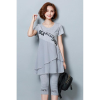 2017夏新款胖mm运动大码微胖女显瘦短袖胖妹妹雪纺两件套