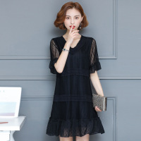YIBUSHENG大码女装短袖娃娃领连衣裙季新款胖妹妹收腰显瘦赫本风长裙子女