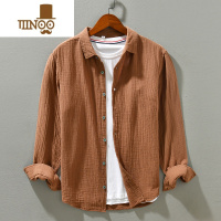 YANXU新款男士长袖衬衫日系休闲潮流复古做旧衬衣外套上衣服