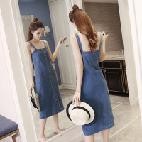 莞馨(wanxin)新款2017年春季连衣裙修身优雅韩版宽松中长款单件背带裙