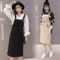 薇侣2017连衣裙秋装新款学院风韩版显瘦中长款背带裙女